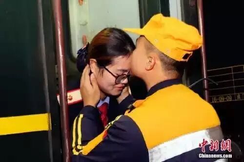 新婚夫妻白江旭和曾诚都是铁路工作者,曾诚执勤的列车会经过白江旭所在的枝江车站。今年“春运”,这对夫妻每8天仅有一次3分钟“车站约会”。