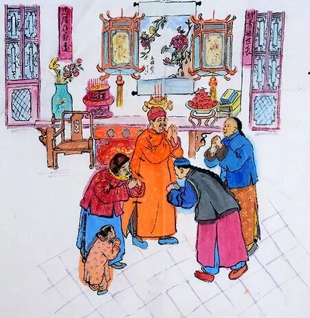 二是躬身作揖,作揖的姿势是先双手抱拳前举。行礼时,不分尊卑,拱手齐眉,上下加重摇动几下,重礼可作揖后鞠躬。这种礼仪一般是晚辈向长辈,或下级向上级拜年时所用。